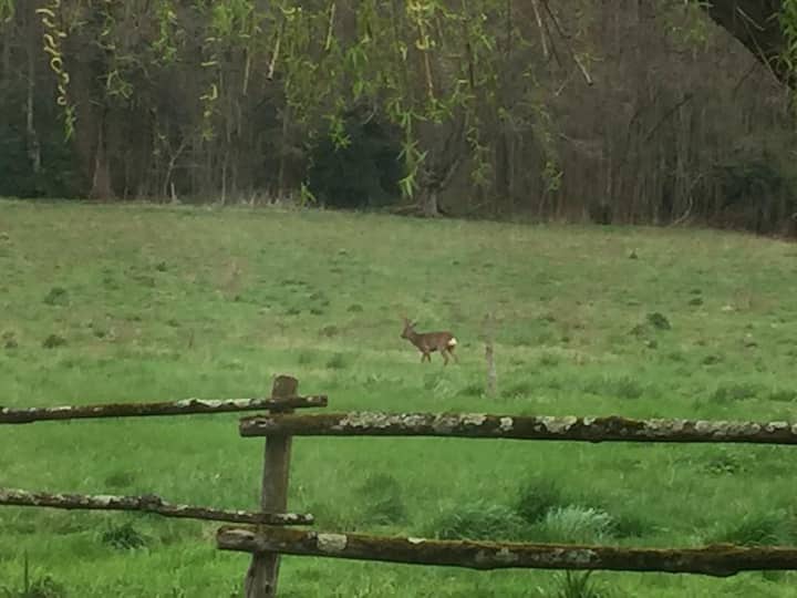 Elle est entourée d'un jardin de 10 hectares et d'un hectare et demi de bois, auxquels vous aurez un accès libre tout au long de votre séjour, ce qui en fait un lieu idéal pour vous ressourcer en solo ou entouré de vos proches.